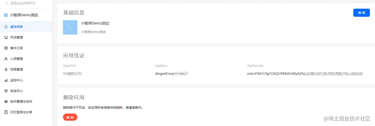 我们首先要获取到钉钉账号的AppSecret和AppKey,这在我们的后台可以查看到,参考: