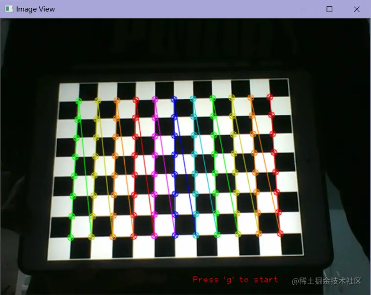 将世界坐标系固定在棋盘上,则棋盘格上的任一点的物理坐标W=0,标定板上的每一个格子大小固定,可以得到每个角点在世界坐标系下的物理坐标 (U, V, W = 0) 。通过这些坐标利用最小二乘法计算出内参矩阵和外参矩阵的积,再依次计算出内参矩阵和外参矩阵。