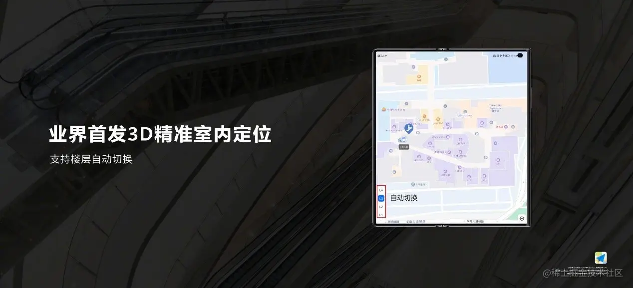 以上技术来自华为2012黎曼实验室(Riemann Lab),通过HMS Core定位服务(Location Kit)面向开发者开放,目前HUAWEI Mate Xs 2折叠屏手机用户使用高德地图APP即可实现“店铺级”精准室内定位体验,后续还将有更多华为机型支持3D精准室内定位技术。