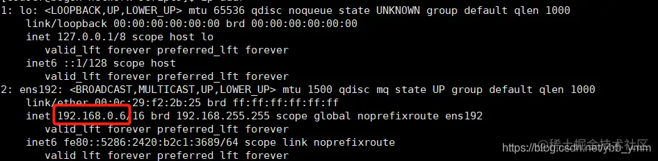 3、执行ip addr命令,可以看到ens192中的ip即是我们虚拟机设定好的ip地址