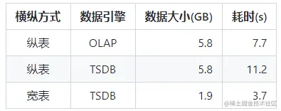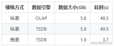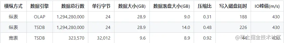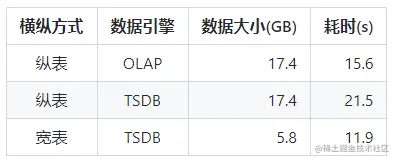 - (1) 存储空间:虽然宽表 TSDB 在压缩比上相对逊色,但是由于宽表模式本书数据字节只有纵表模式的三分之一,所以在空间开销上宽表 TSDB 模式使用最小;