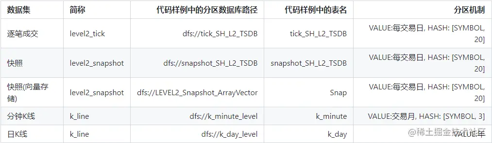本文的因子计算基于三类国内 A 股行情数据集:逐笔数据、快照数据和 K 线数据(分钟 K 线和日 K 线)。快照数据以两种形式存储:(1)各挡数据分别存储为一列;(2)用 array vector 将所有档位的数据存储为一列。