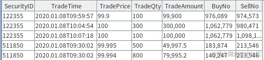 逐笔成交是交易所公布买卖双方具体成交的每一笔数据,每3秒发布一次,每次包含这3秒内的所有成交记录。每一笔成交撮合,都由买方和卖方的一笔具体委托组成。上述数据样例采用字段 BuyNo 和 SellNo 标注买卖双方的委托单号,其它关键字段分别为: SecurityID(标的物代码),TradeTime(成交时刻),TradePrice(成交价格),TradeQty(本笔成交量)和 TradeAmount(本笔成交金额)。