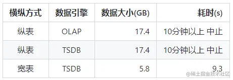 宽表 TSDB 引擎具有最佳的查询性能,随着数据量上升,纵表数据列转行操作要额外增加 piovt by 的列,从而增加更多的去重、排序操作,导致生成面板数据的耗时进一步增加。