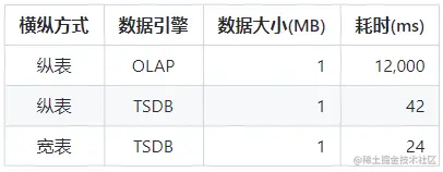 - (4) 以面板模式检索数据:宽表 TSDB 模式的查询速度是纵表 OLAP 和纵表 TSDB 的至少10倍以上;