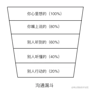良好的沟通是保证项目顺利进行的必要条件。沟通的问题也往往被我们忽视,因为沟通漏斗的存在,从“你心里想的”、“你所表达出来的”、“别人听到的”、“别人理解的”到“别人行动的”,存在信息逐级丢失的问题。别人做到的可能远远不是你想要他做的事情。
