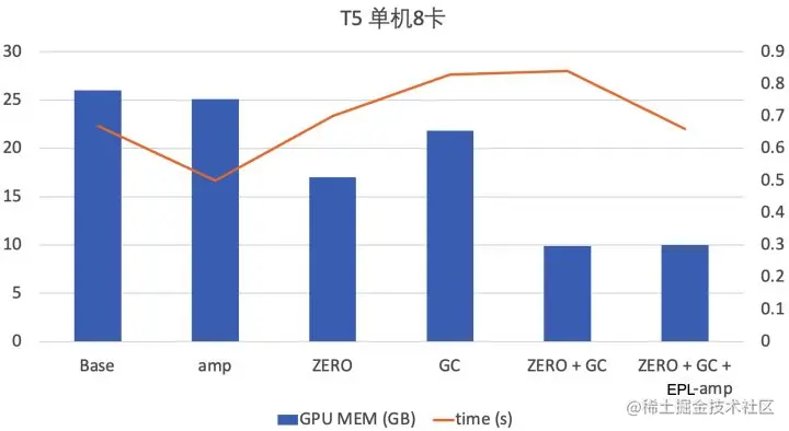 同时,EPL支持各种显存优化技术的组合使用,达到显存的极致优化。我们在T5模型上开启GC+ZeRO+显存优化的AMP技术,在性能保持不变的情况下,显存降低2.6倍。