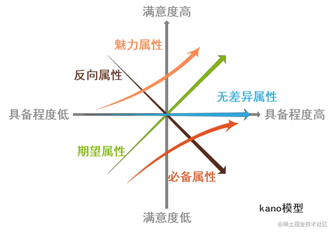 卡诺模型( Kano Model )是最受欢迎的优先级模型之一,因为该模型能够真实有效地引入用户满意度作为评估指标。