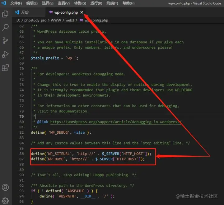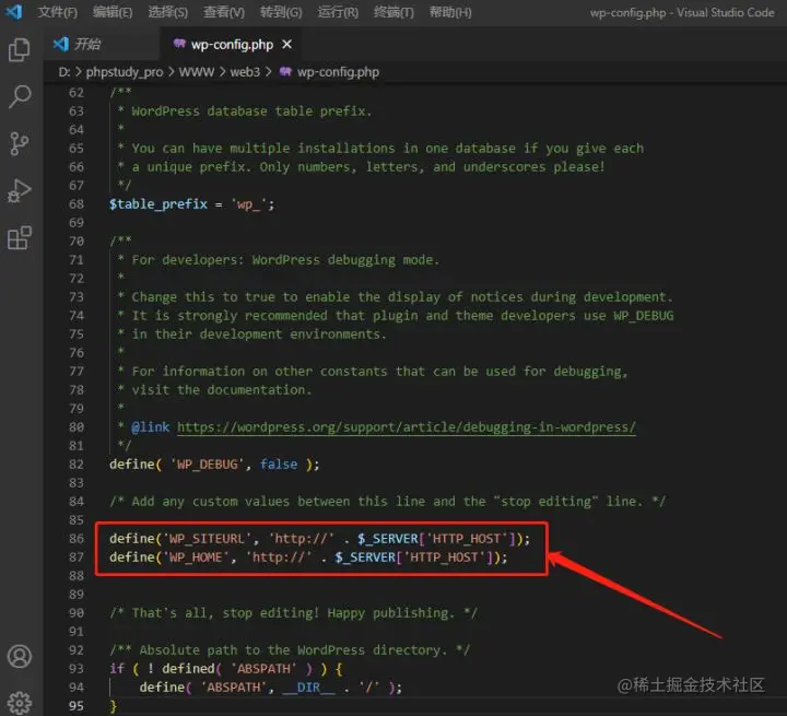 这一步很重要!如果没有对WordPress进行正确配置,面对公网访客的访问请求时,WordPress将无法正确应对,导致访客访问本地网站失败!我们之前进行的所有工作也将失去意义! 在代码输入后,再点击代码页面上方的“X”将其保存关闭,再退出VS code程序。