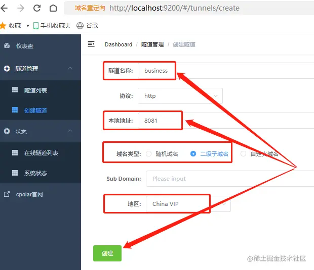 点击启动cpolar,在输入登录名和密码后,进入cpolar客户端主界面。在左侧找到“隧道管理”项下的“创建隧道”按钮,点击进入数据隧道创建页面,输入我们本地网页的相关信息,将公共互联网与WordPress网页输出端口连接起来。