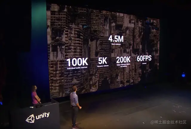 没错!是手机上60帧!全场响起了欢呼声。这样的场景如果不是DOTS,别说手机了电脑都跑不了,我相信此时大家已经明白了DOTS的威力了吧。