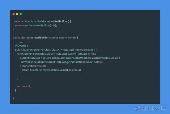 这里构建了一个AllDefaultPossibilitiesBuilder实例,通过builder实例来构建Runner。篇幅限制,我们就直接到AllDefaultPossibilitiesBuilder的runnerForClass方法,来看看builder是怎么构建Runner的。