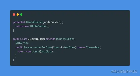 注意最后一个builder方法junit4Builder,从名字我们可以知道它是用来构建JUnit4Runner的,我们点进去确认一下。