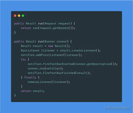 在前面梳理的执行流程中,我们已经知道了JUnitCore是整个测试的入口,它构建了Runner实例,而Runner通过测试类构建了对应的测试模型,并通过Statement来执行,通过TestNotifier来通知TestListener来处理测试结果。