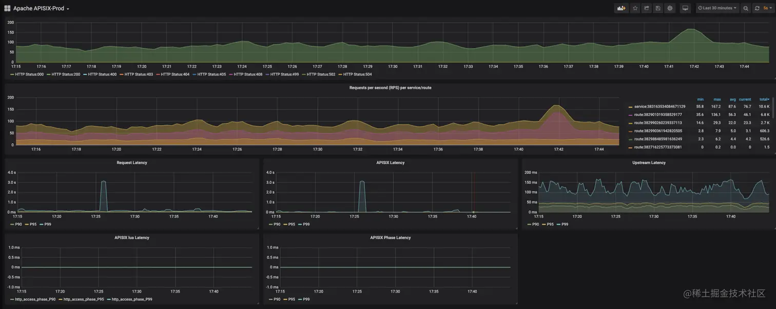 - 借助于 APISIX 监控体系,完善了从网关到服务的统一监控方案;