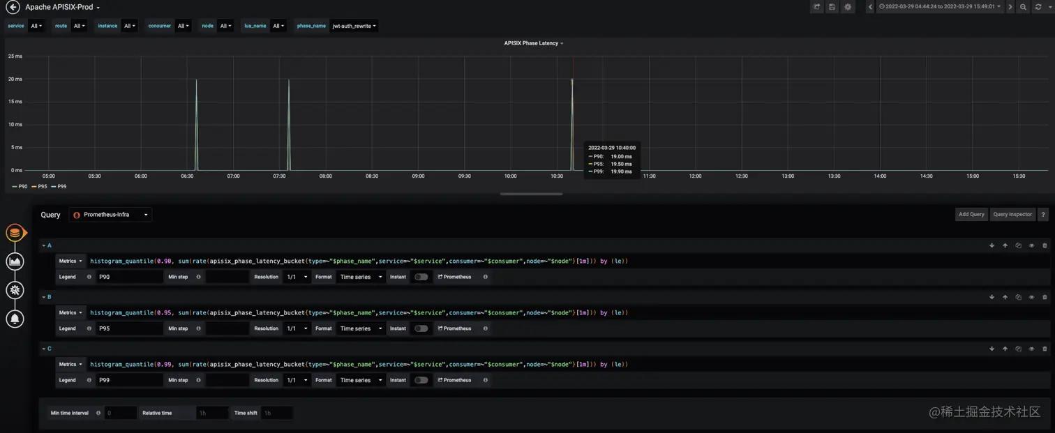 - APISIX 请求延迟耗时( APISIX 进行转发时逻辑执行带来的耗时)