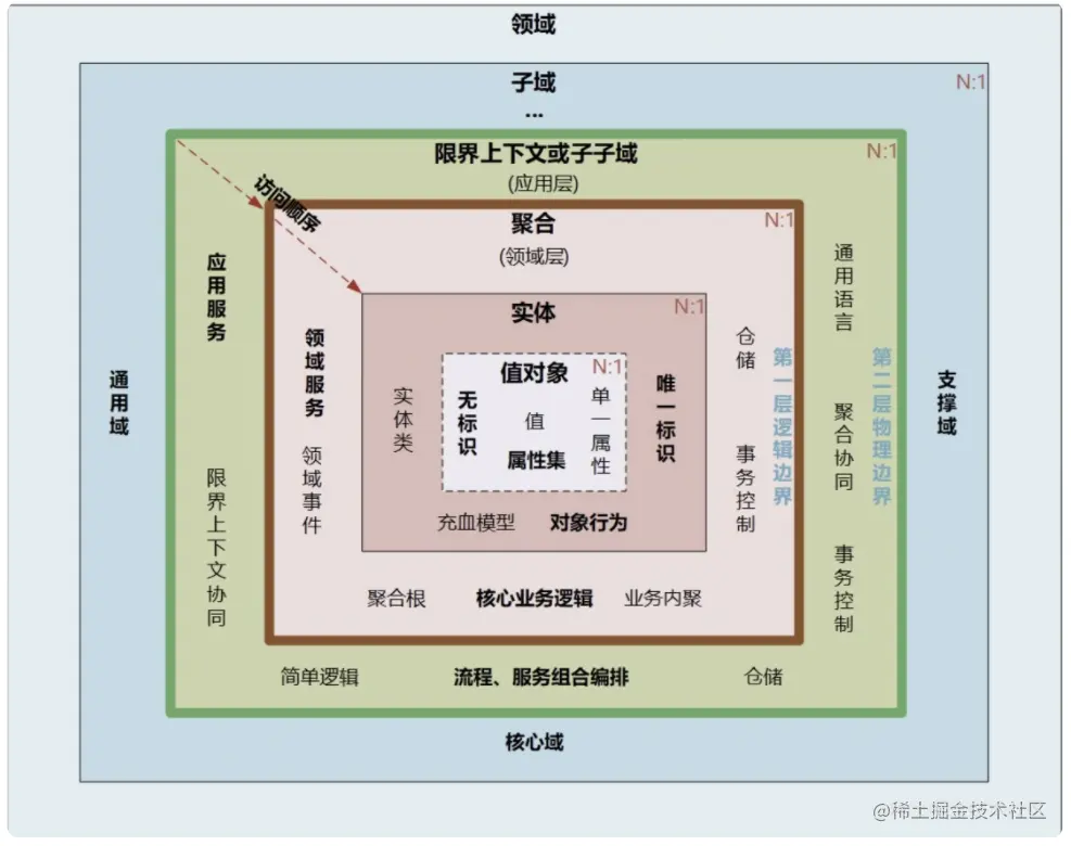 学习 DDD 前,有很多基础概念需要掌握,这幅图总结的很全,他把 DDD 划分不同的层级: