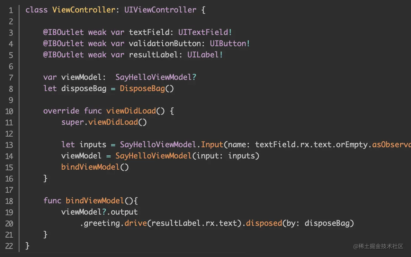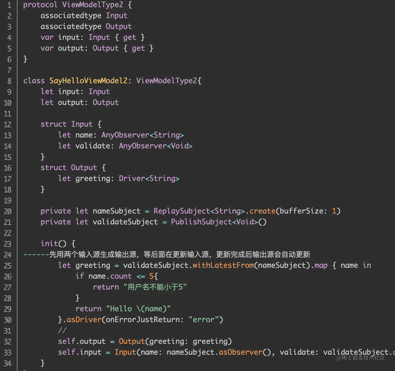 1.如果输入源能一次性拿到,那么可以用第一种方式,通过初始化输入源得到输出源,然后在 Controller 中将输出源与观察者进行绑定,如下所示: