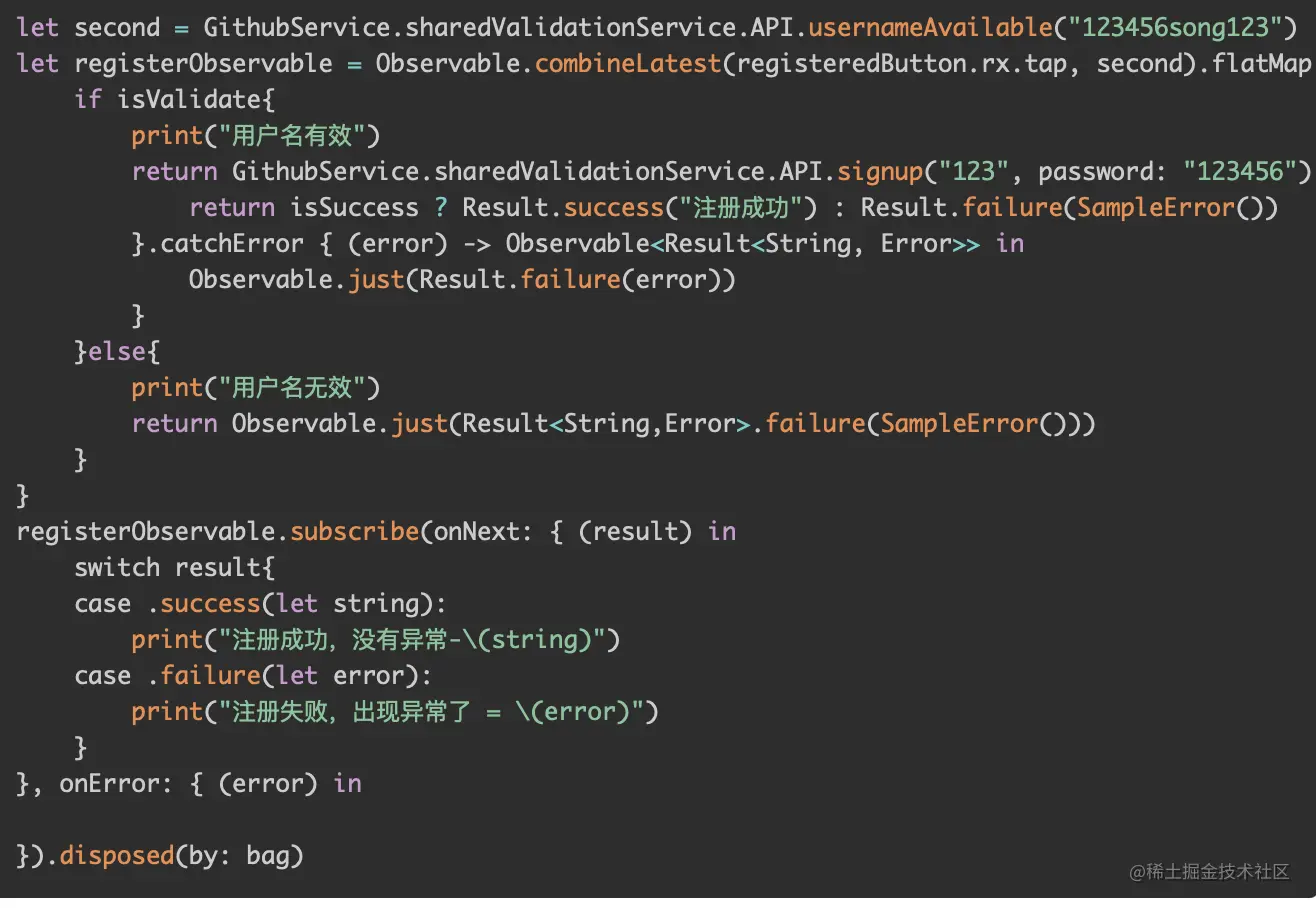 2.一个序列如果发出了 error 或者 completed 事件,那么整个序列都会被终止,所有内部资源都会被释放。如果你需要提前释放这些资源或取消订阅的话,一般使用 DisposeBag 或者 takeUntil