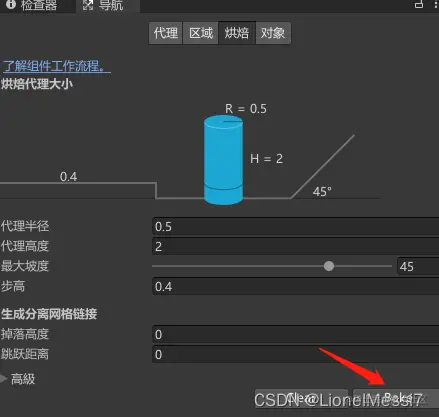 烘焙(bake)参数决定了可进行移动的范围,可以预览效果。