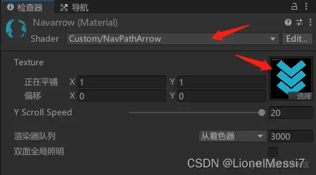 编辑基本思路:unity自带的AavMeshAgent实现巡线,创建shader箭头材质,利用MeshRanderer实现线路绘制。至于为什么不用LineRander,可能是渲染起来费劲吧(其实是我不会)~