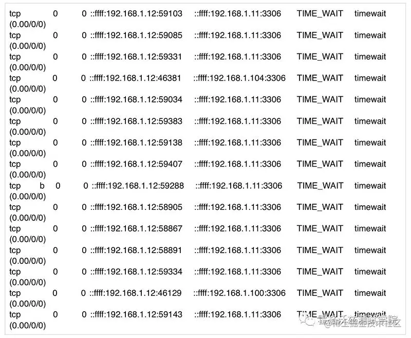 通过查看网络连接状态,看到有大量的 TIME_WAIT 出现。\