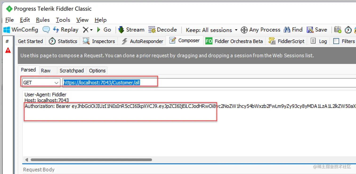 我们调试控制器的方法入口,如可以通过Fiddler的测试接口的调用情况。