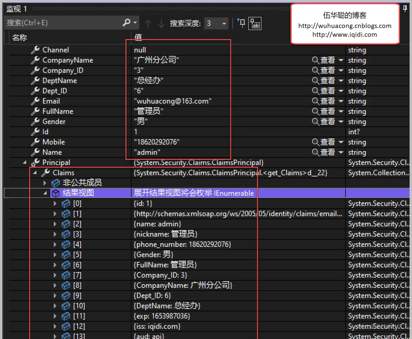 在登录授权的这个时候,控制器会把相关的Claim信息写入到token中的,我们在客户端发起对控制器方法的调用的时候,这些身份信息会转换成对象信息。