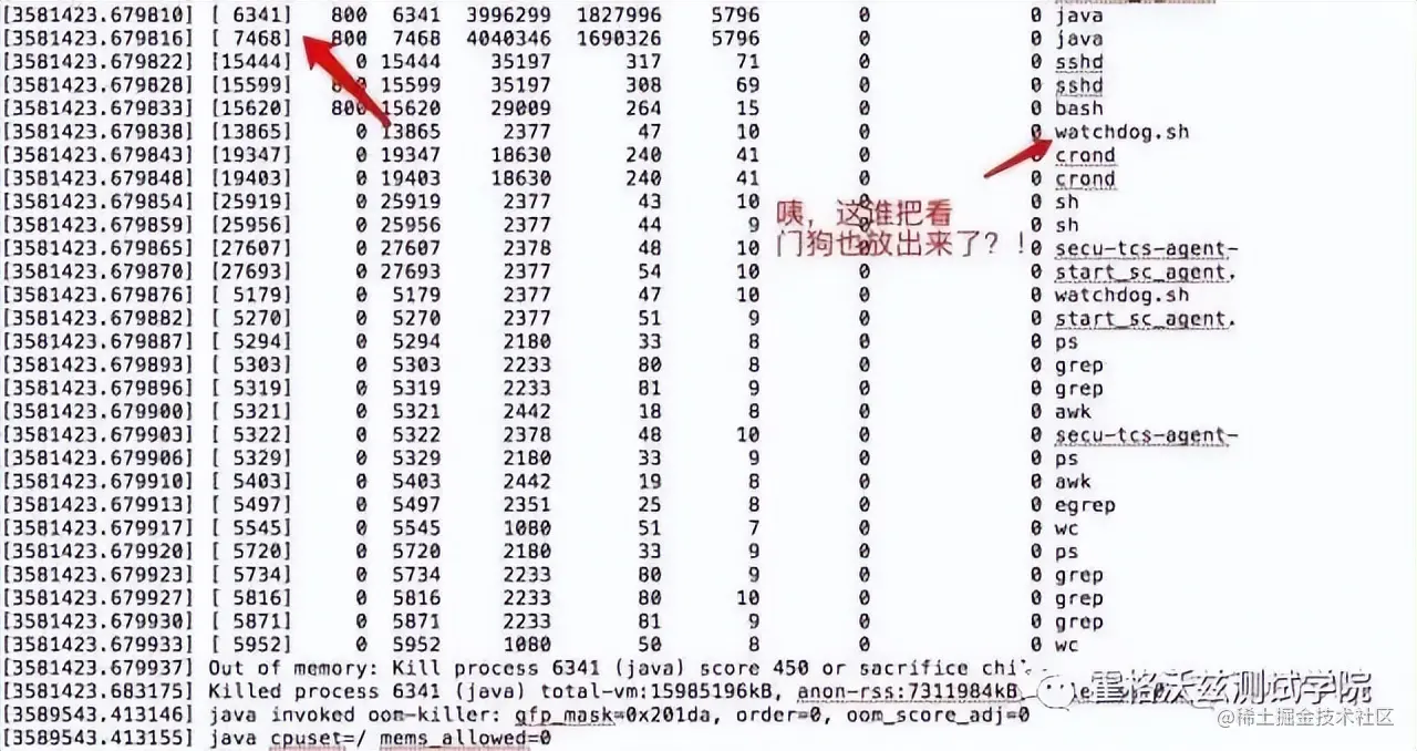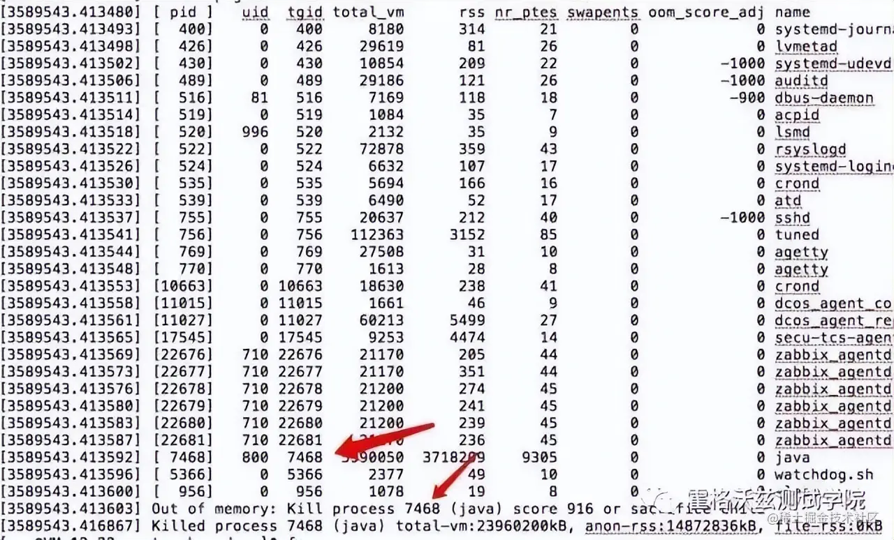 既然是进程没了,日志也没信息,那下一步是什么呢?就是看 dmesg 了。系统日志总有些信息吧。进程死了无非就那么几个地方能看到。