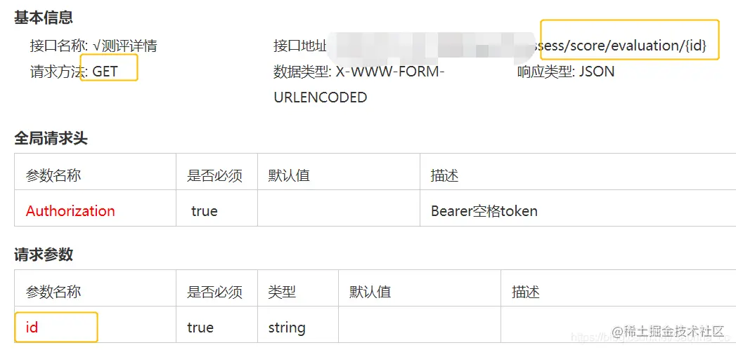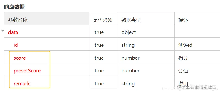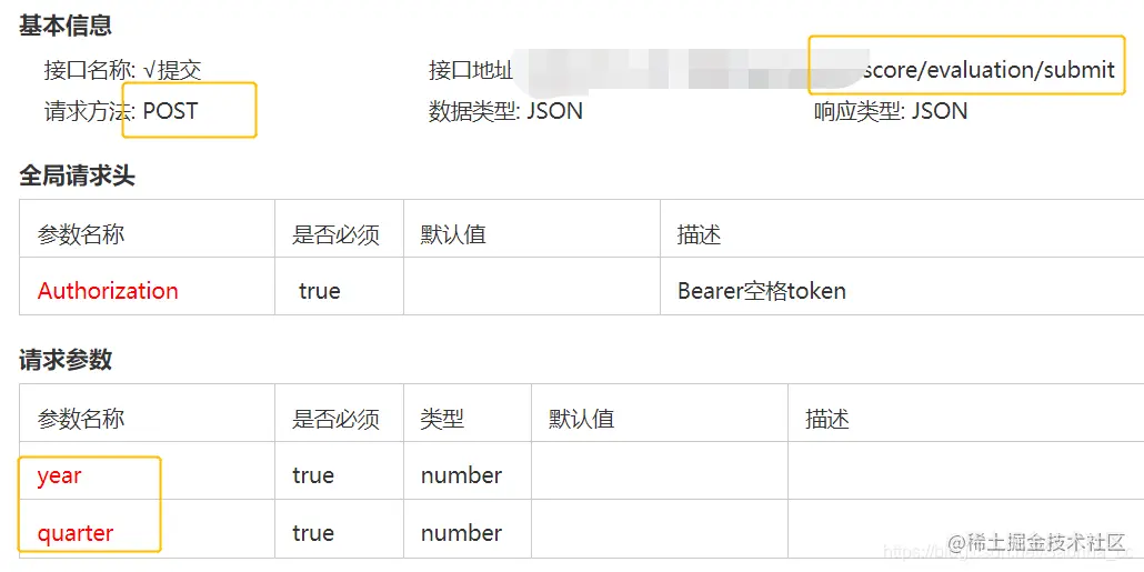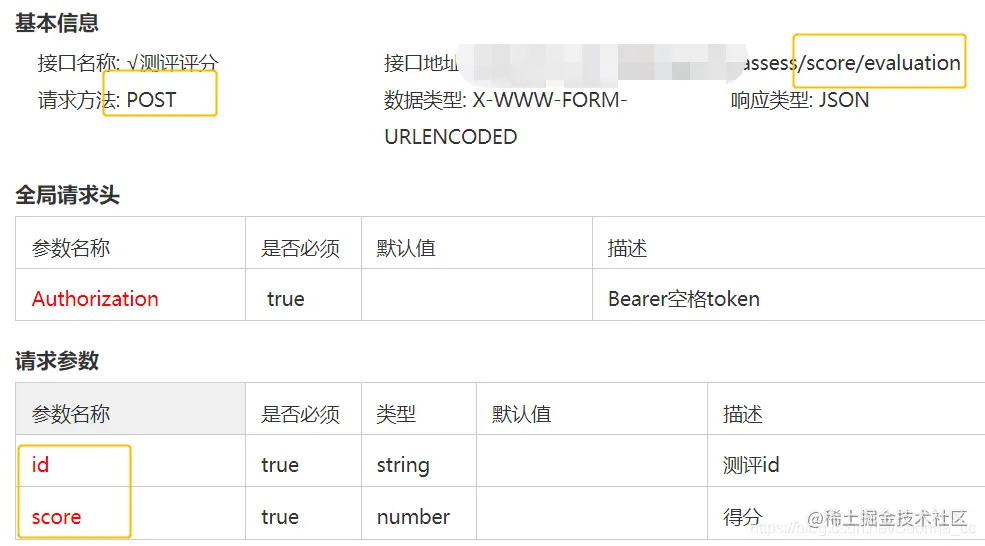 至此完成了主页面的列表,其实和上一节的基本相似,只是对于一些复杂情况做了处理,接下开我们需要进行评分弹框中显示详情,以及评分保存功能,整体提交功能进行开发,先看一下接口文档。