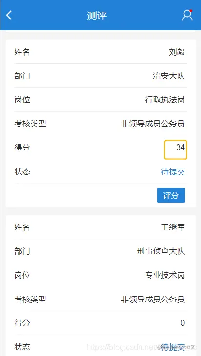 8. 评分页面后,输入相应的分数进行打分,并调用接口保存数据。