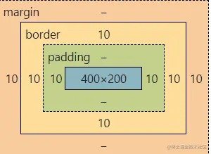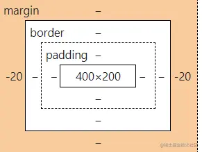 至于这种情况,大家应该可以提前猜到结果了,内容区长度依然是400px,但是由于在margin: 0 -20px的作用下,整个盒子会向左偏移20px