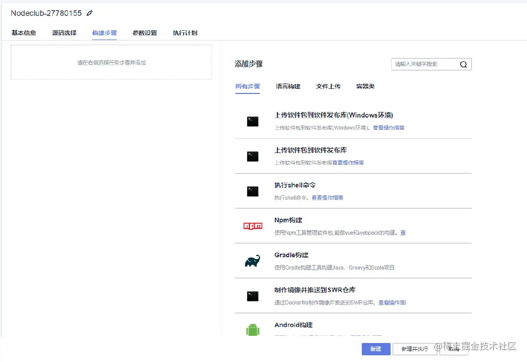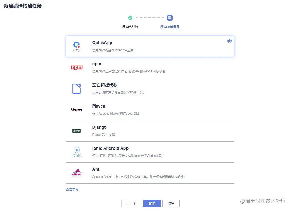 其中workerman-todpole社区系统的构建工具是php7.3.3,“小幺鸡”在线文档管理平台的构建工具是maven3.5.3-jdk8-open,NodeClub社区系统的构建工具Shell命令,这些在编译构建服务中都能覆盖,除此之外还有其他的模板和空白模板可以选择。