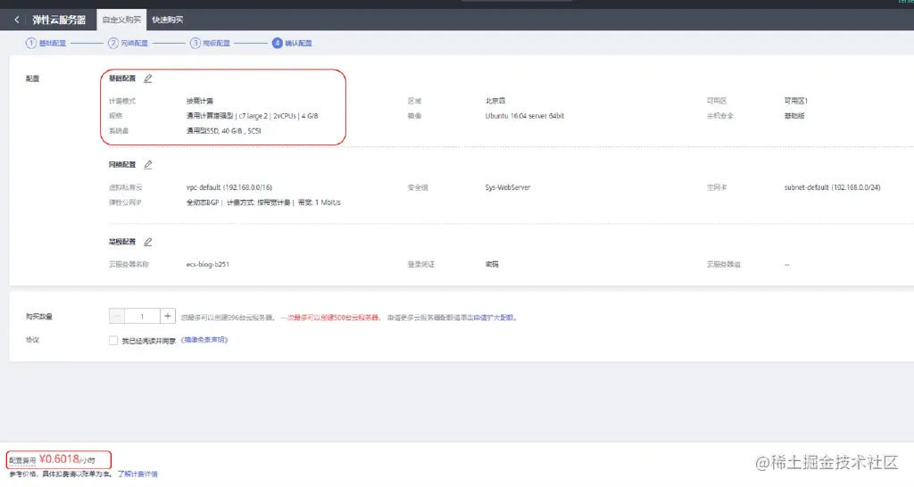 具体的计费可以看一下,Ubuntu16.04的计费如下,0.6018/小时。