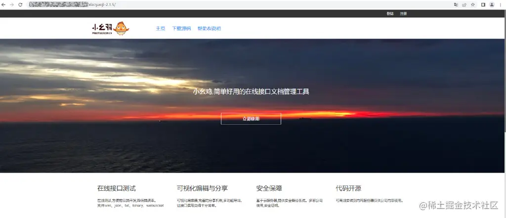 部署完成后就可以通过约定的方式访问应用程序。如http://ECS公网IP:端口号或者http://ECS公网IP:8080/xiaoyaoji-2.1.5的形式,其中ECS公网IP即之前步骤里创建的ECS的公网IP,下图为“小幺鸡”在线文档管理平台的访问界面。