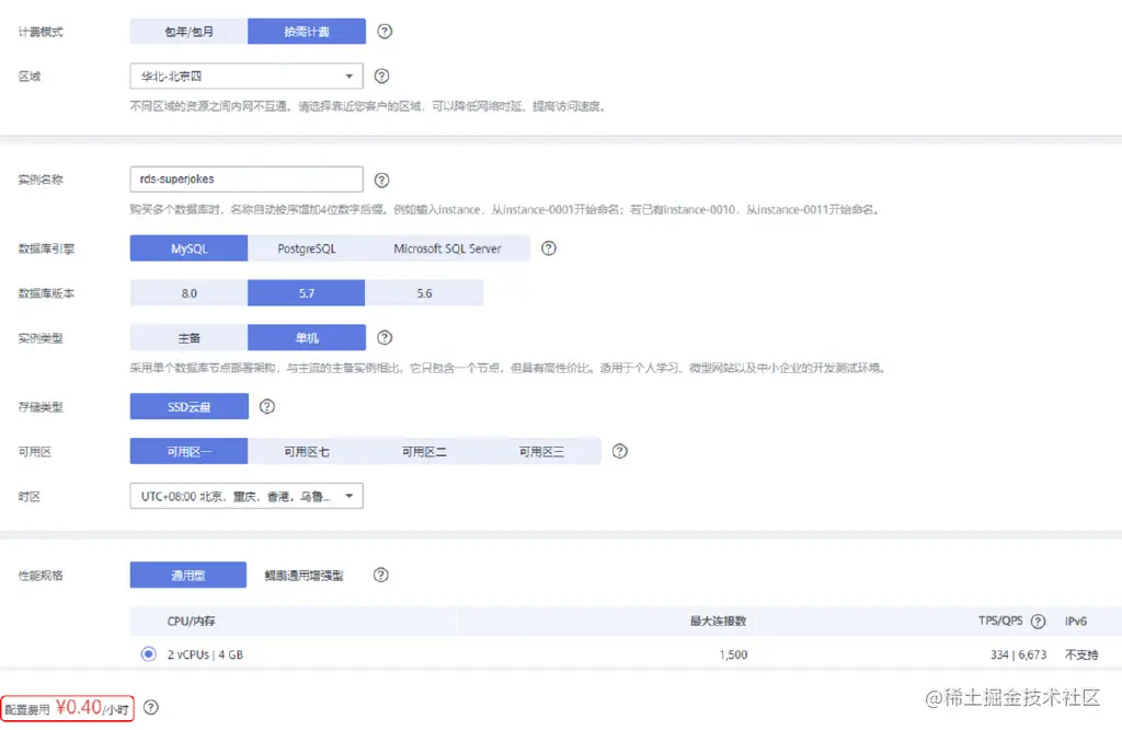 云数据库RDS的收费情况如下,基本配置0.40/小时。