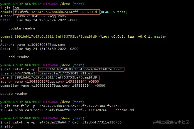 git add将代码从工作区提交到暂存区git cat-file -p ce013625030ba8dba906f756967f9e9ca394464a查看加密后的文件内容