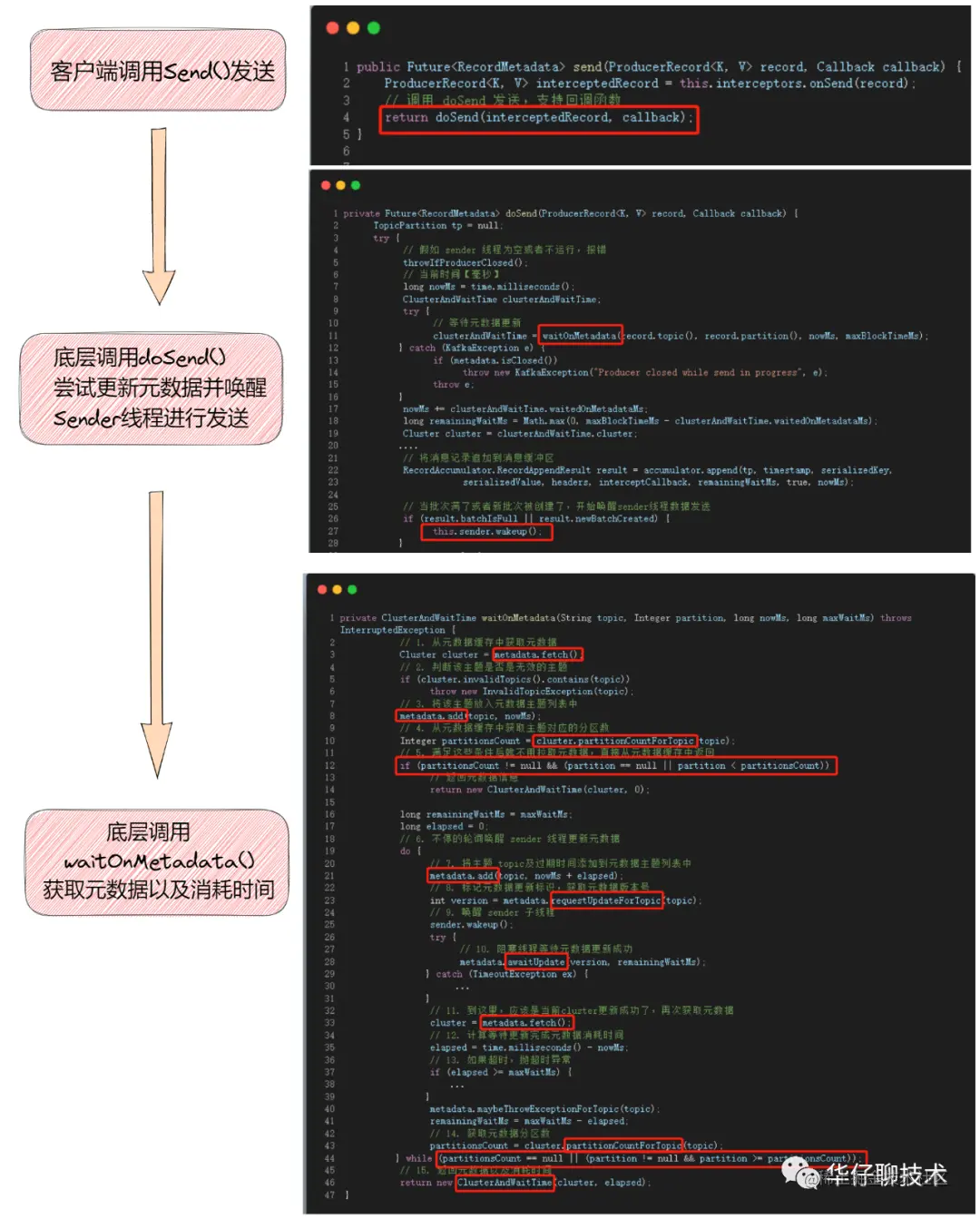 接下来我们逐一分析元数据在生产者端是如何被加载和拉取、更新的。为了方便大家理解,所有的源码只保留骨干。