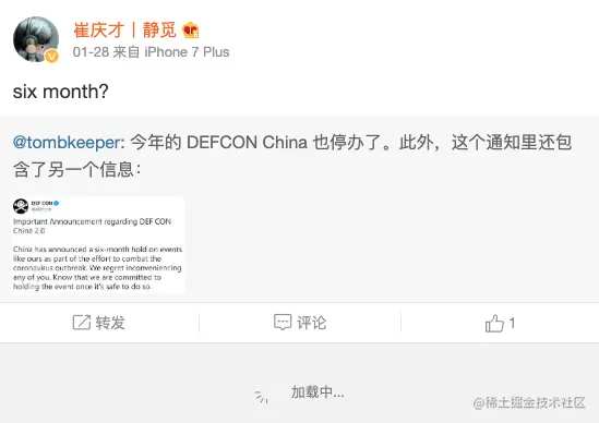 浏览网页的时候,我们会发现很多网页都有下滑查看更多的选项。比如,拿微博来说,以我的主页为例:m.weibo.cn/u/283067847…,切换到微博页面,一直下滑,可以发现下滑几个微博之后,再向下就没有了,转而会出现一个加载的动画,不一会儿下方就继续出现了新的微博内容,这个过程其实就是 Ajax 加载的过程,如图所示。