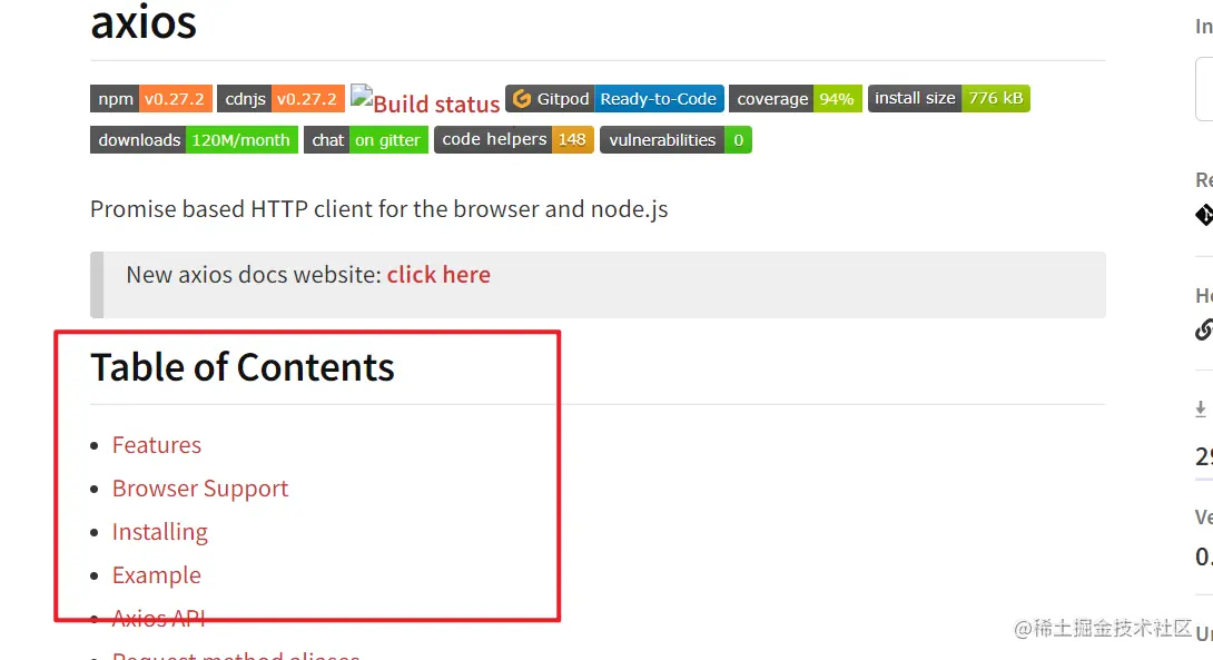 例如我们看一下Axios的文档目录: