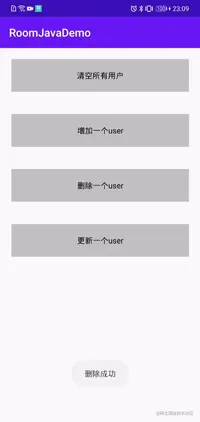 效果如下,共四个操作------清空、增加、删除、更新,源码地址:gitee.com/fjjxxy/room…