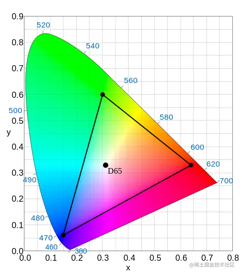 sRGB是一个显示用的色彩空间,最初是为CRT计算机显示器创建的,但现在已经成为图形和印刷的标准化。它与Rec.709视频色彩空间几乎完全相同。它基于相同的基色,具有与Rec.709相同的色域,但指定了不同的传递函数。