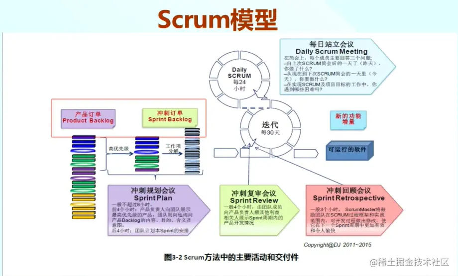 2.迭代式的软件开发过程:通过将整个软件交付的过程分为多个迭代周期,一个周期就是一个Sprint。