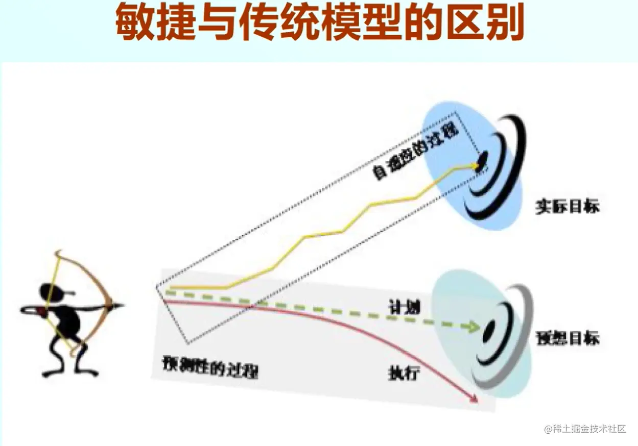 2.与之形成鲜明对比的的是敏捷软件开发过程,他是不断地进行反馈,动态调整需求,最终达成目标,这种自适应性的特征使得敏捷开发的产品更符合实际的需求。