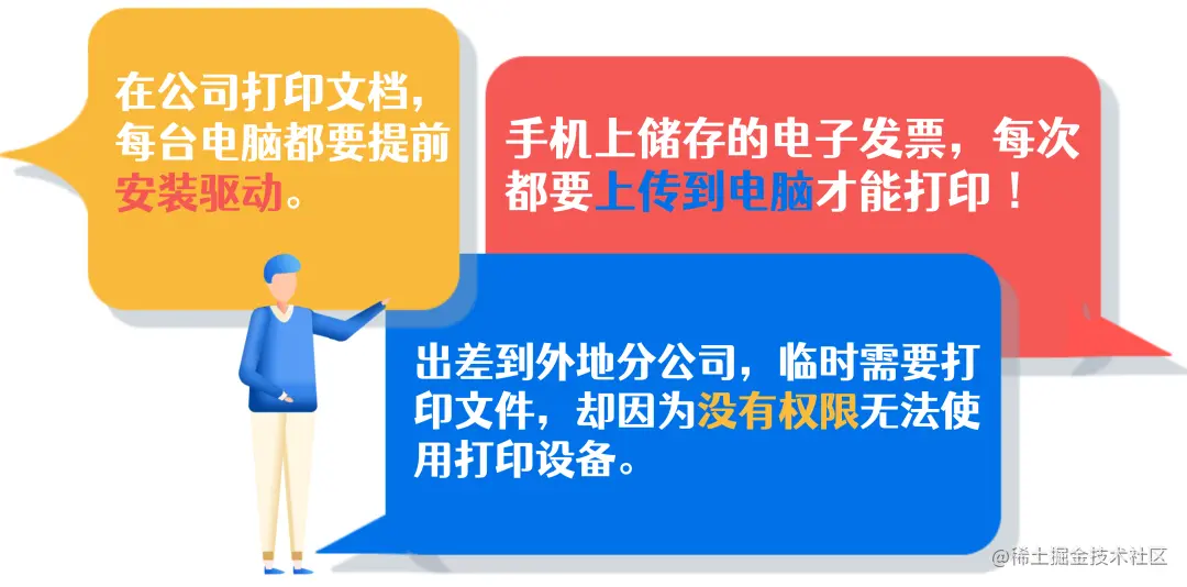 传统打印设备与地点绑定,无法支持员工灵活办公(出差、工位变动、会议等)的打印需求,更无法满足钉钉和其他移动设备的打印需要。