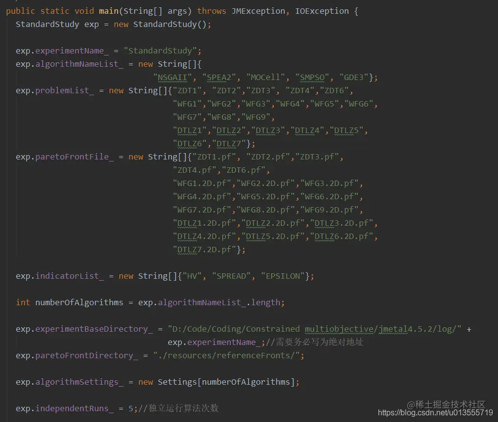 jmetal.qualityIndicatorQualityIndicator中,在程序中主要在algorithm main和algorithm Settings中使用 - 举