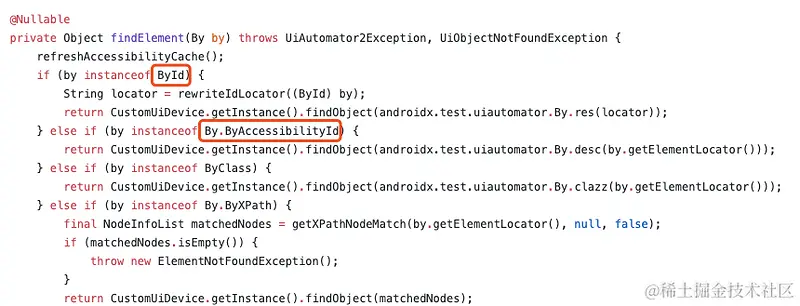 以id定位为例,在Uiautomator的源码可见其对id定位要更为宽泛,当我们使用By.id的时候,会同时去匹配resourceId、accessibility id、id