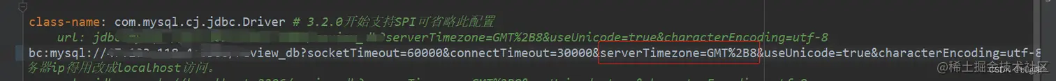 从数据库方面入手,既然是由于数据库机制,那么我们可以在数据库连接时指定时区参数serverTimezone,将它设置从[UTC]改为[GMT%2B8],即可。