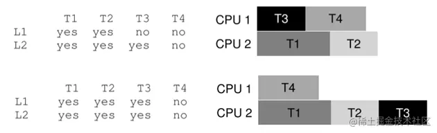 我们可以通过调度的方式来避免死锁,假如我们知道各种线程在执行时可能会抓住哪些锁,那么就可以以一种保证不会发生死锁的方式调度这些线程。