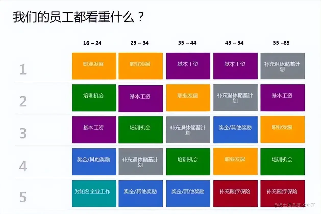 不过,对于34岁以下的年轻人,职业发展机会和培训机会也很重要。为什么?